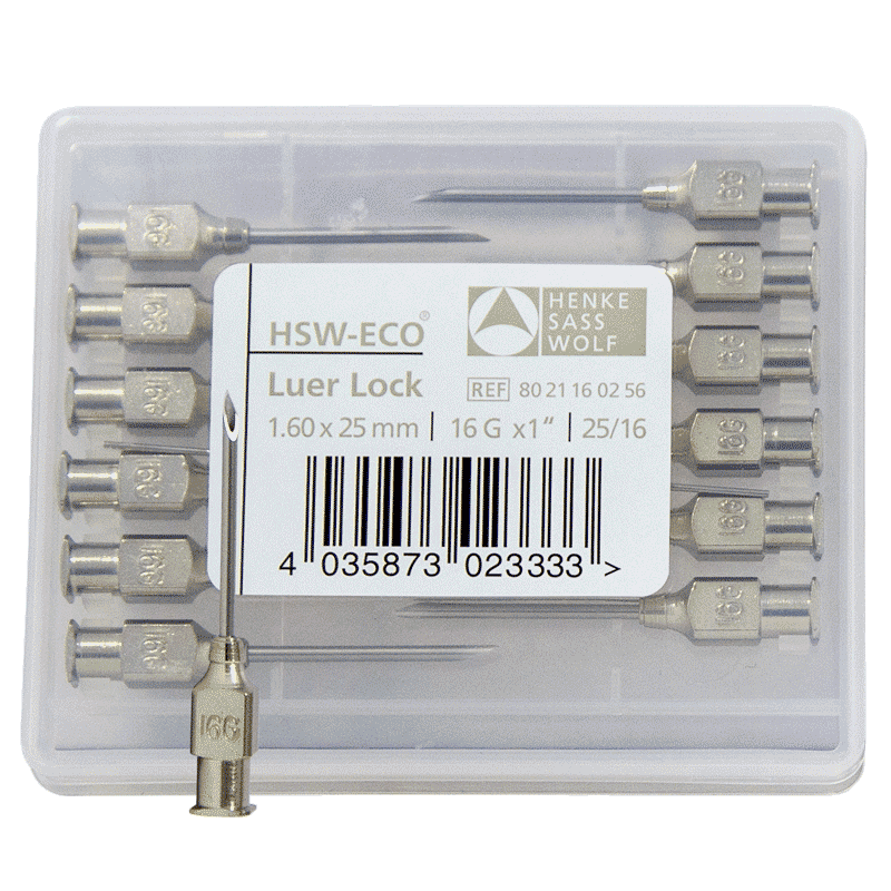 Needles – HSW-ECO Luer Lock Stainless Steel – 16G x 1″ [12 Pack]