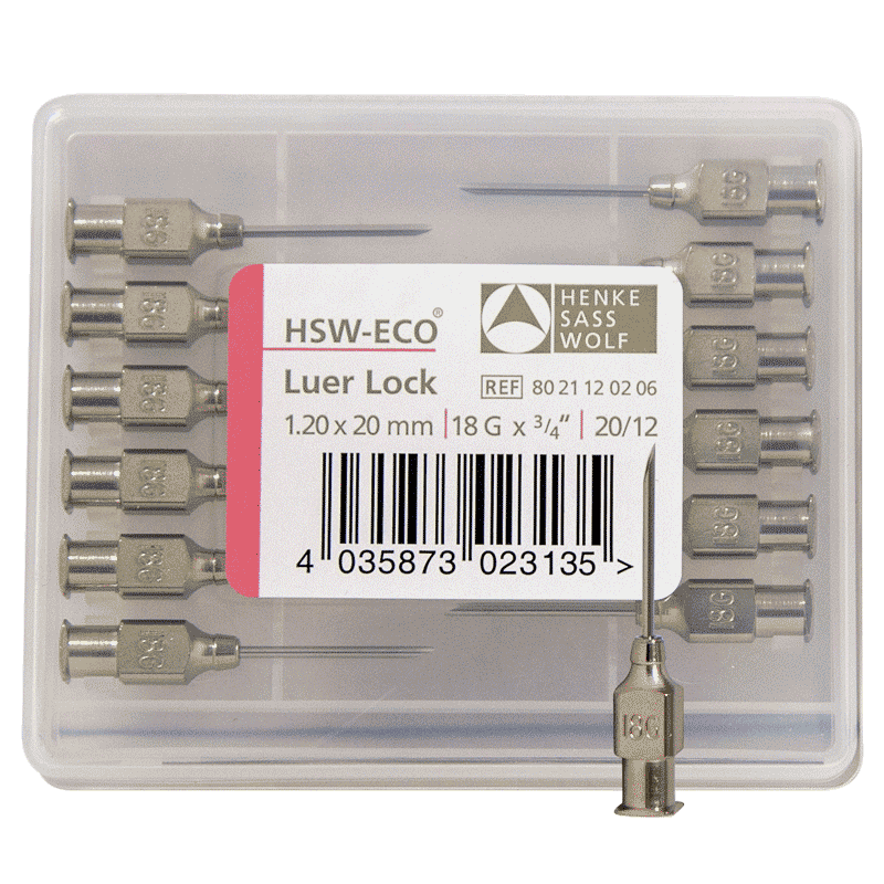 Needles – HSW-ECO Luer Lock Stainless Steel – 18G x 3/4″ [12 Pack]
