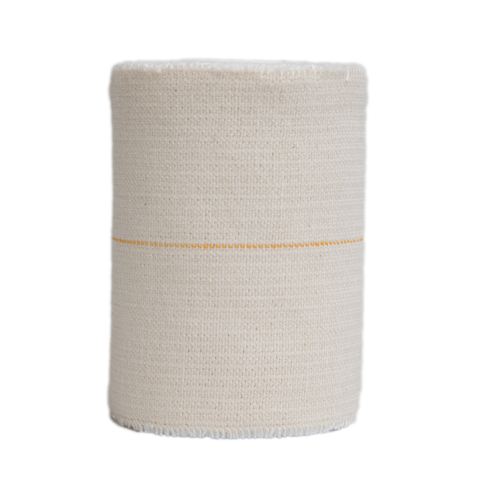 Elastic fabric self-adhesive bandage. Porous formulation ensures adequate ventilation of bandaged tissue. Central guideline to assist correct overlap in application.